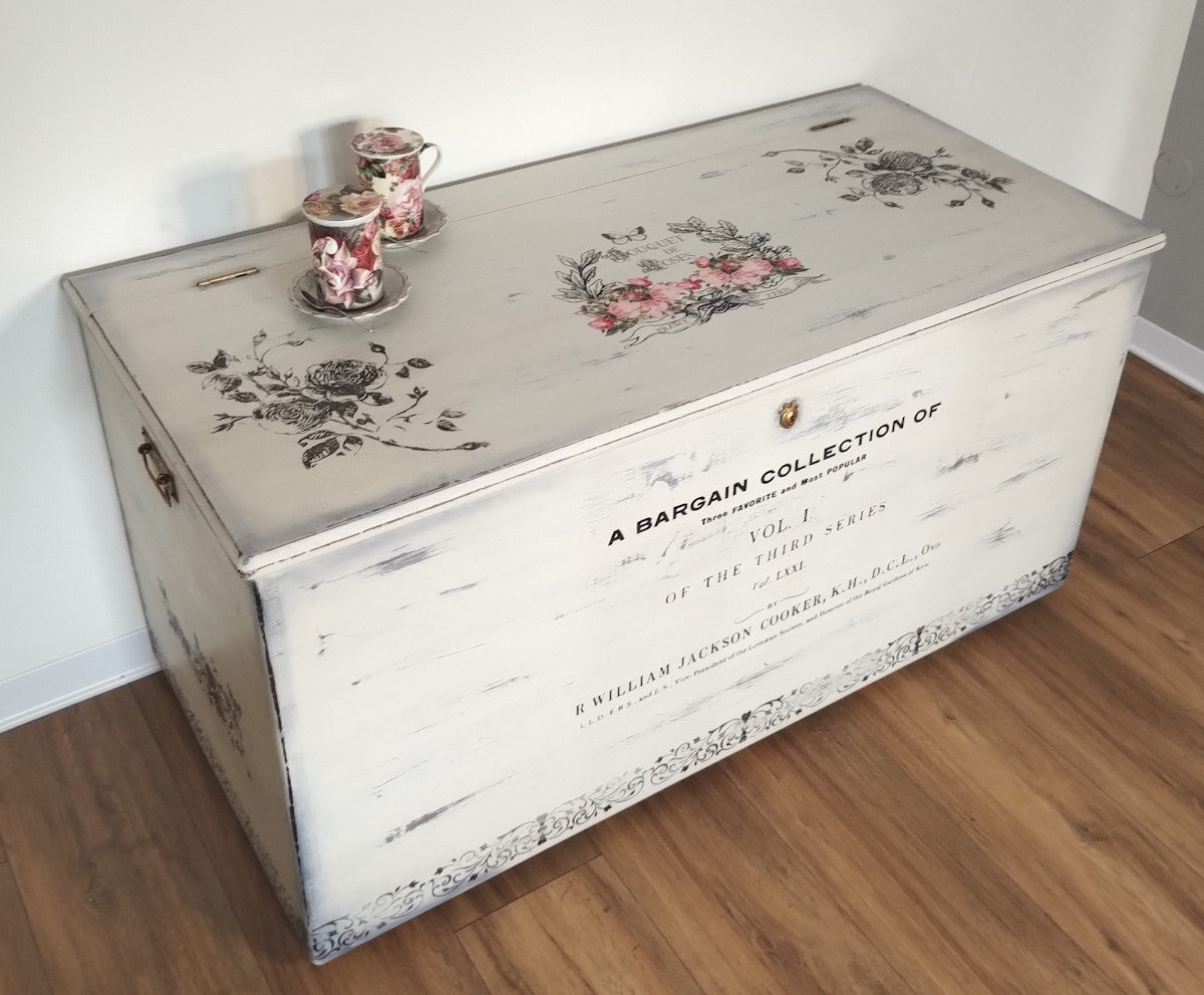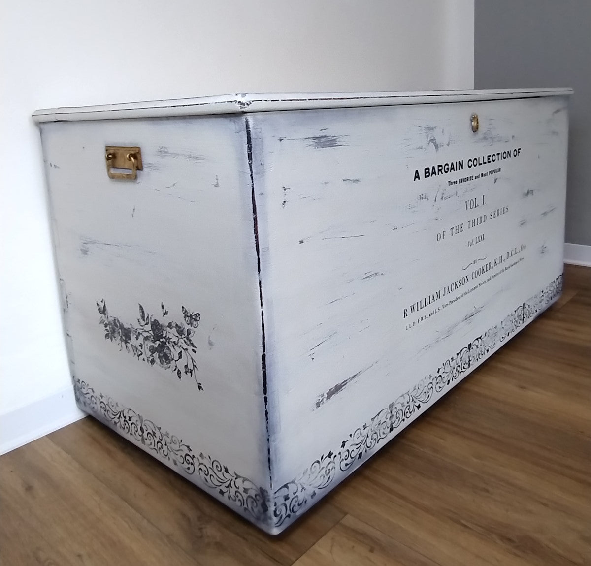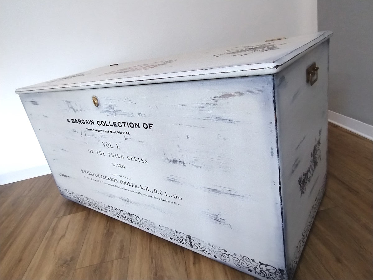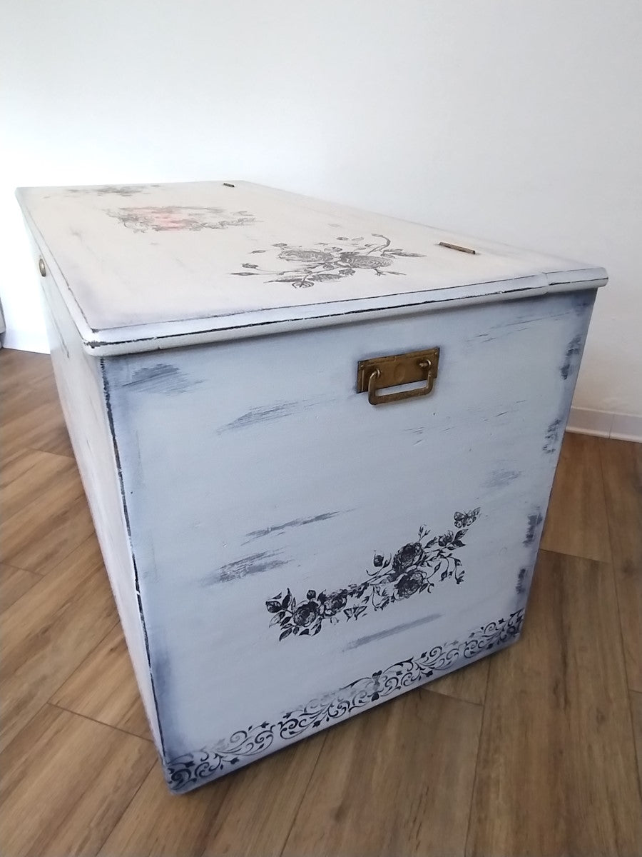 ESAURITONO SPEDIZIONERITIRO IN SEDE CON MEZZI PROPRI POSSIBILITA’ DI CONSEGNA A PAGAMENTO DA CONCORDAREBaule Cassapanca in legno decorato a mano stile shabby. Molto capiente e bello come arredo.Misure:Larghezza 116 cmAltezza 60 cmProfondità 55 cm