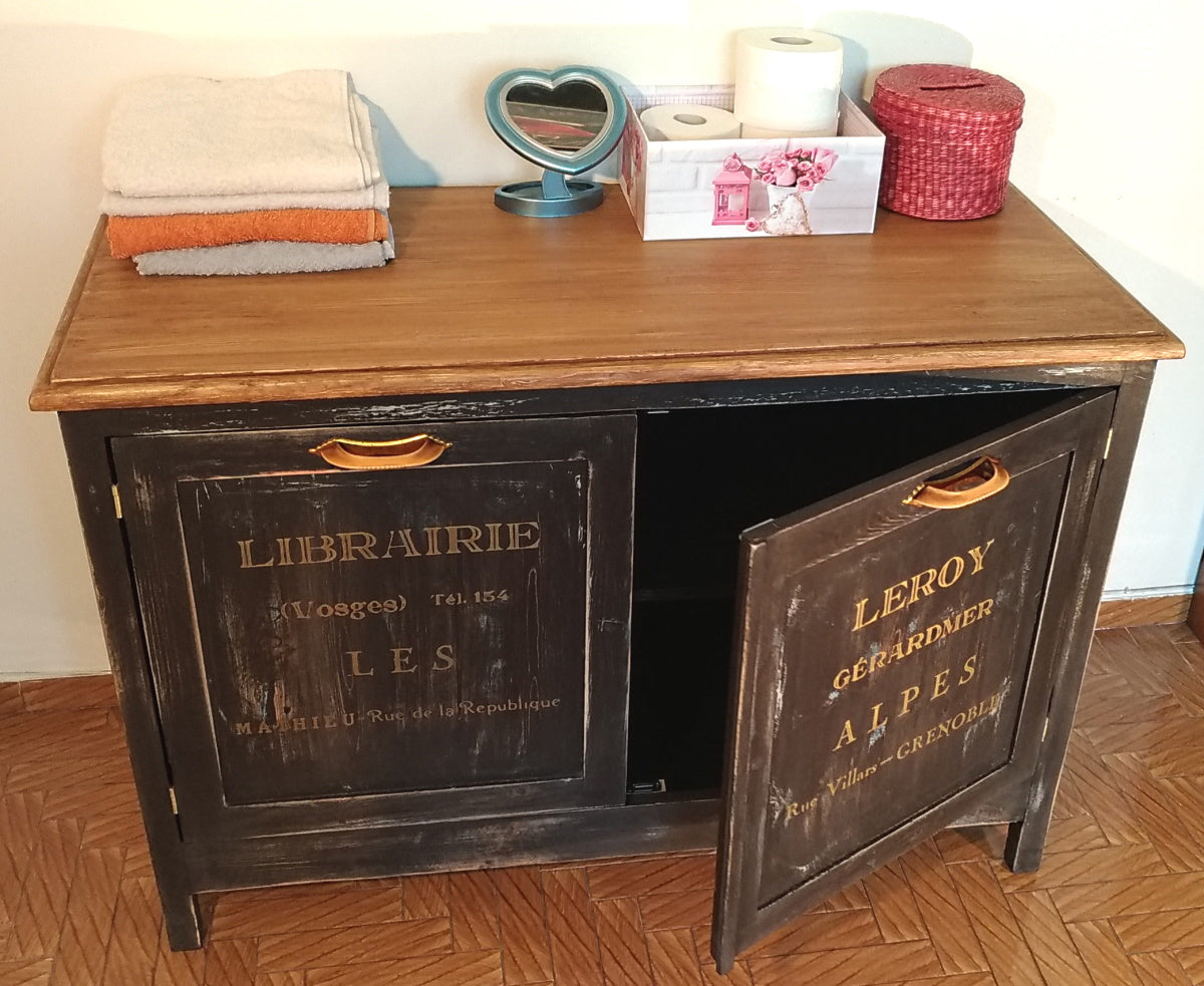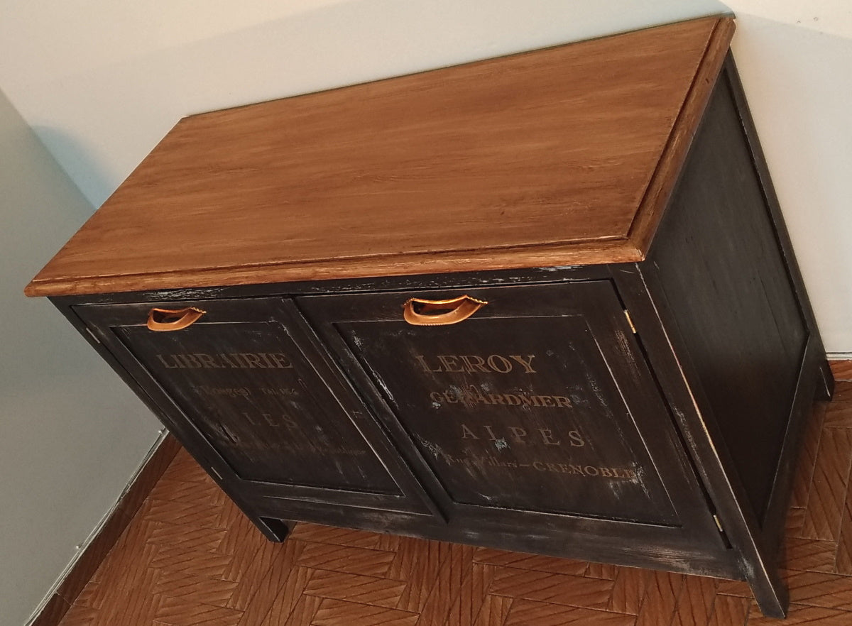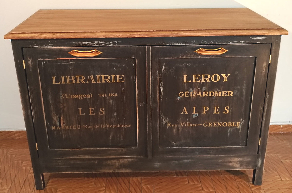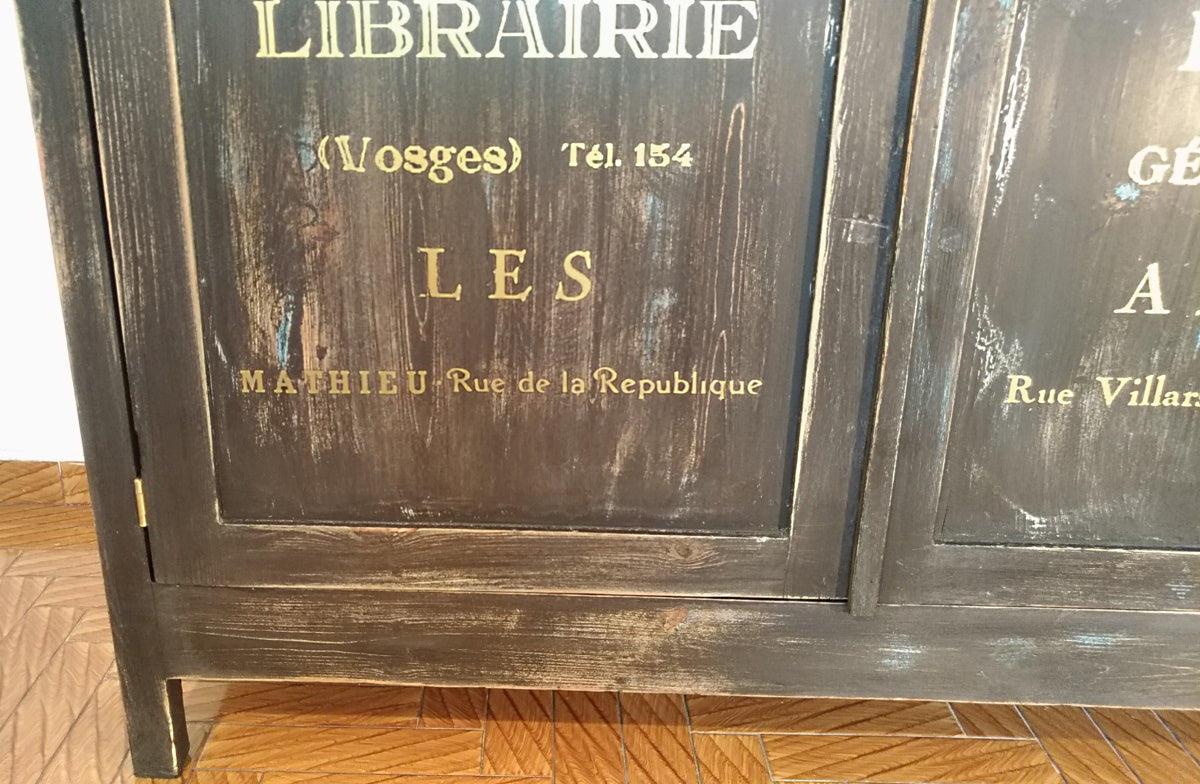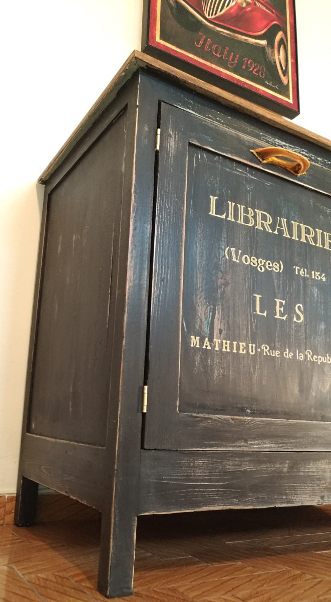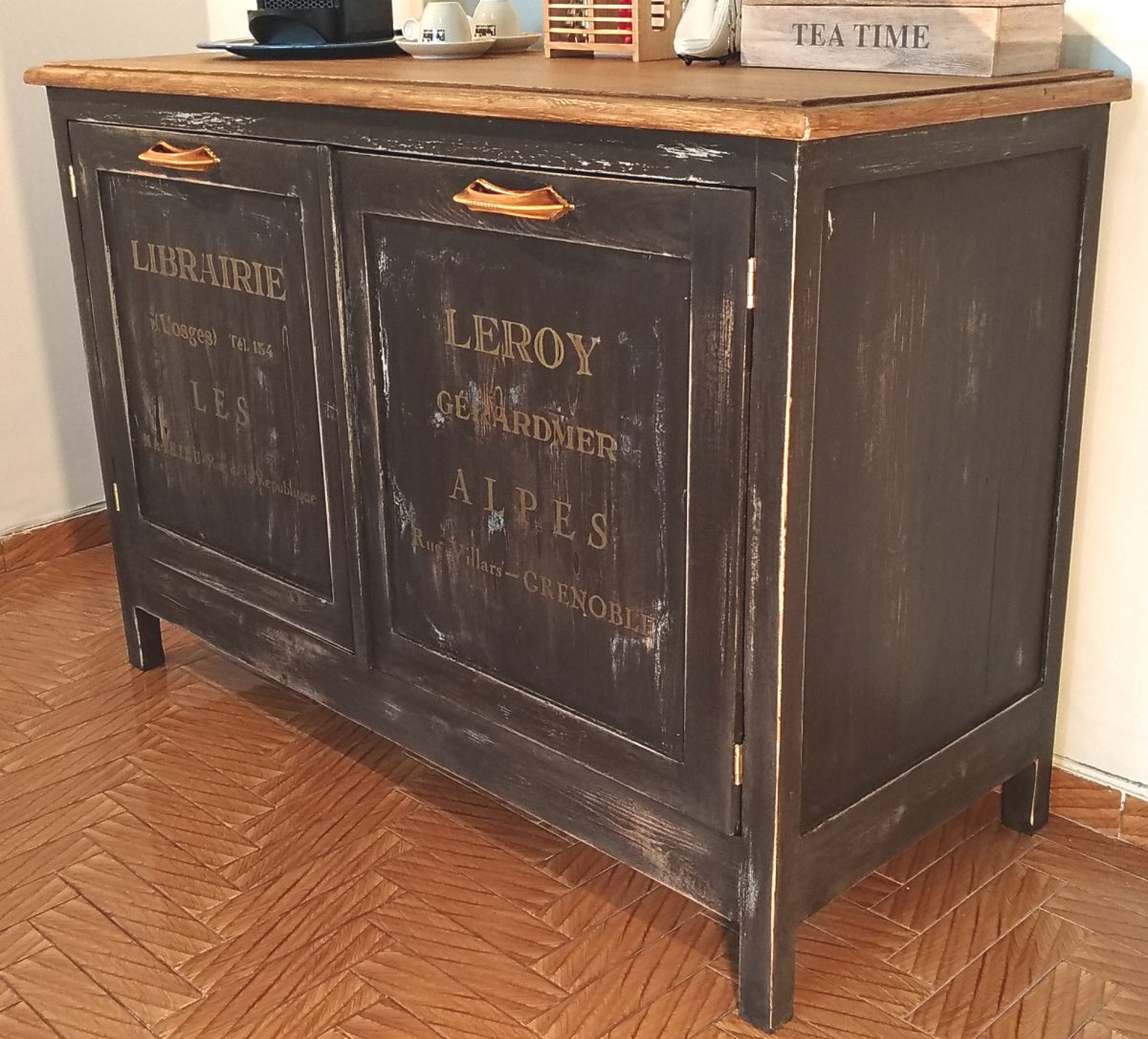 Credenza dipinta a mano in stile industrial, mobile multiuso e molto capiente.Misure:Larghezza 120 cmAltezza 82 cmProfondità 52 cm