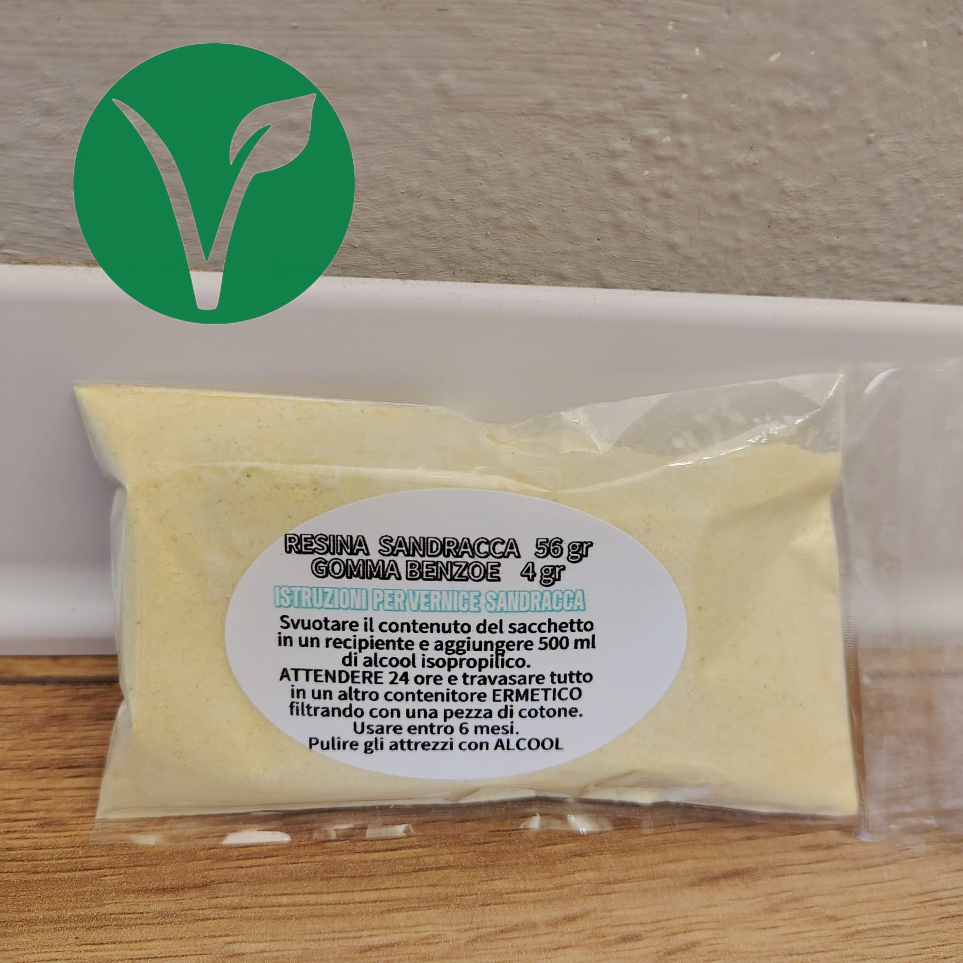 ISTRUZIONI PER QUESTO KIT: il kit è composto da 500 ml di alcool isopropilico, 56 gr di Resina Sandracca e 4 gr di Gomma Benzoe.